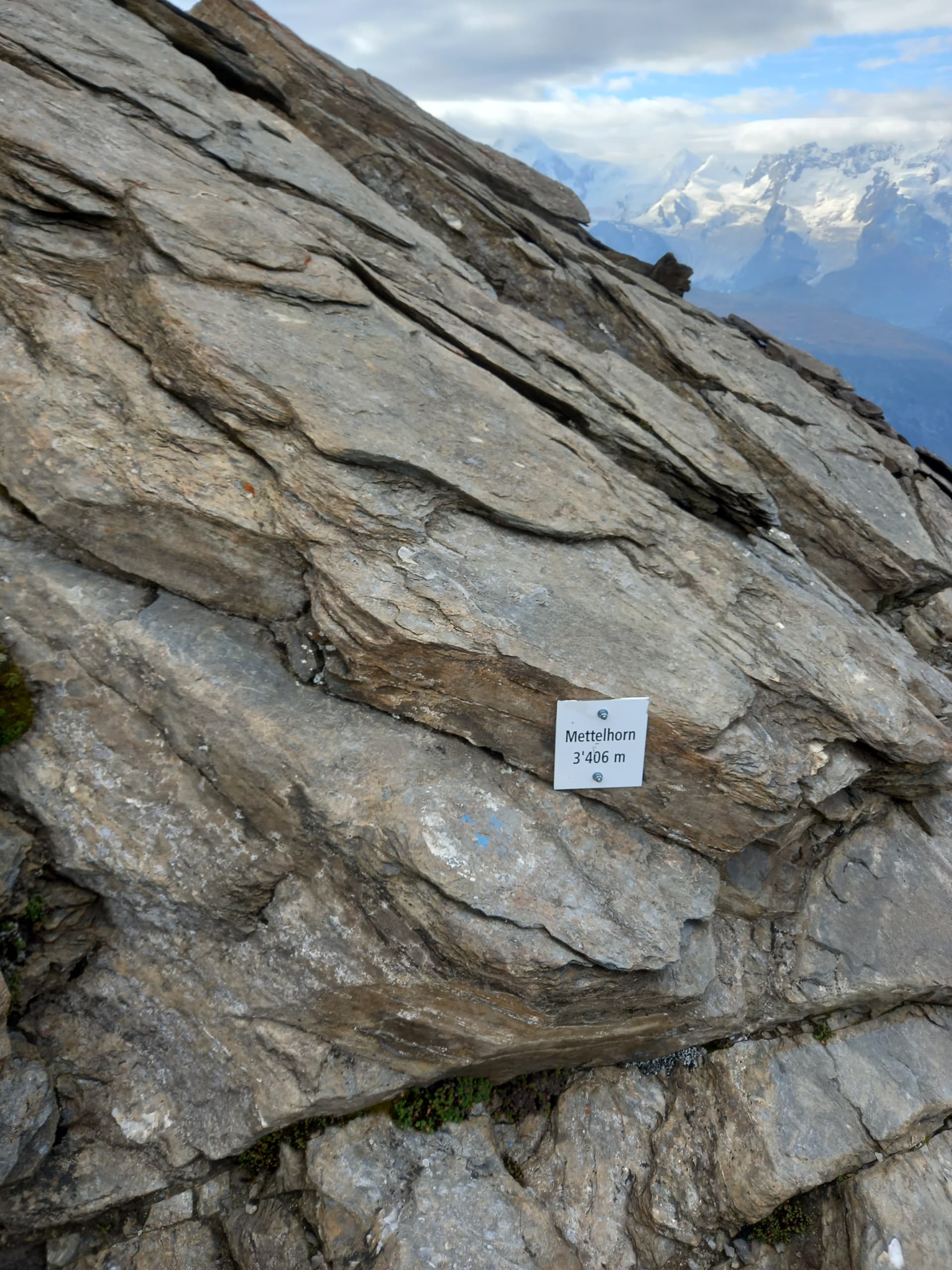 The Mettelhorn, a fine summit that for me is the highest I have reached. In planning, I was torn between it and HB/VS-125 on the other side of the valley, Oberrothorn. I decided that, after realising the lift that takes you most of the way to Oberrothorn is closed due to rockfall, I would go for a less activated summit!
