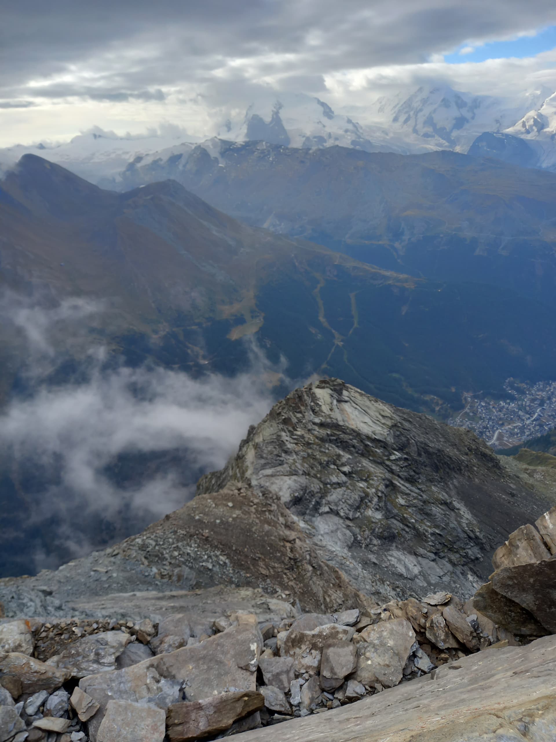 I then decided to add in the Platthorn, not a SOTA summit but still worth going up after the effort of the climb up from Zermatt. It was a short, sharp climb which by the time I reached it I was in a cloud, and could not look at the Mettelhorn.